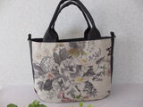 生成り地に優しい色合いの蝶や花々が癒されそうな生地(イギリス製)でいままで出会ったことにのないような色合い、柄に魅せられトートを作りました。