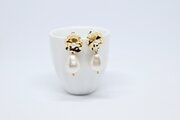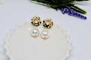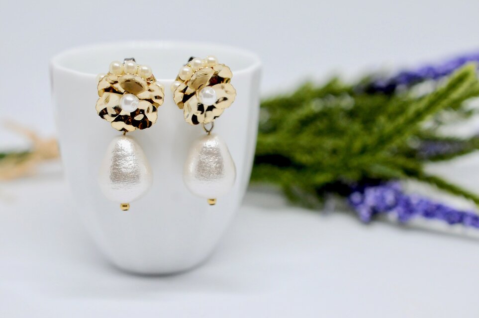 コットンパールはシャイニーなオフホワイト、動くたびに耳元で揺れて輝きます。