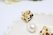 ワイヤーがゴールドで、キラめくビーズとパールが美しい。ただフックが細いと装着時や落ちやすいかと思います。