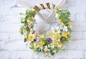 たまご型のリース マーガレット・すみれ:ピンク むらさき 黄色