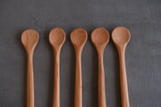 薬味をすくったり、ドリンクをかきまぜたりするのに使いやすい、小さなスプーンです。すくう部分は手彫りで仕上げてあり、一点一点違う表情になっています。
