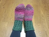 ◎長編み&シェル編みのソックスを作りました。足首のシェル編みが優しい履き心地です。