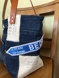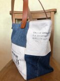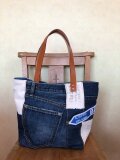 ジーンズを解体してアルバートンのアーミーダック生成りのバイオウォッシュ生地と組み合わせて1点もののトートバックを作りました。