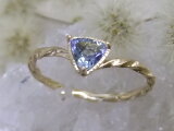 織り交ざる淡いラベンダーとミントグリーンの煌めきが美しいバイカラータンザナイトのK14lunapinkgoldアンティーク調リング*多色性が見られるタンザニア産タンザナイト(非加熱)可愛く上品な色味で透明度の高い希少なルースによる1点ものをお楽しみ下さい*可愛いルースの色味に合わせてほのかにピンク味を帯びたK14lunapinkgoldをリング素材にマットなツイスト仕上げ、5~16号(推奨サイズ)の範囲を目安に調整可能、サイズ確定後に石留め致します*