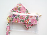 ポケット仕切りのクリアポーチ カードサイズ リバティ ベッツィ ピンク