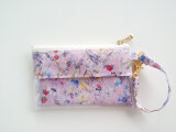 ポケット仕切りのクリアポーチ カードサイズ ワイルドフラワーズ ピンク