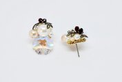 クリアなクリスタルの上に大きさ、色、質感の違った色々なパールをたっぷりとあしらっていますのでボリュームもあり何処かアンティークな感じもするクラシックなデザインになっています。