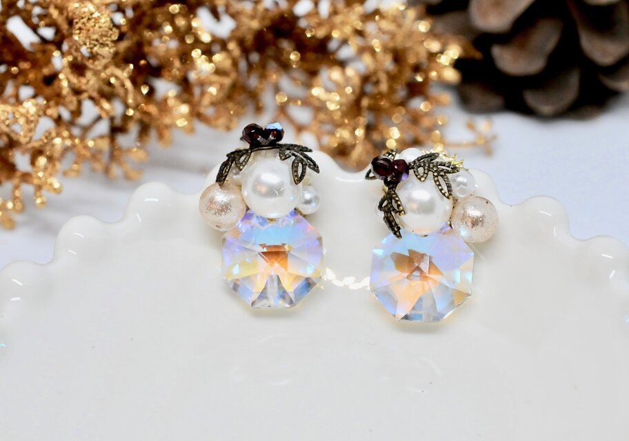 オーロラ色に輝くクリスタルを使用していますので下に映り込む色によってクリスタルの色味が違って見えます! 色々なシーンでの色の変化もお楽しみいただけます。