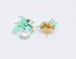 ワイヤーがゴールドで、キラめくビーズとパールが美しい。ただフックが細いと装着時や落ちやすいかと思います。