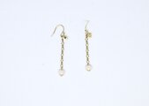 フックピアスに下がるクラシックなデザインのチェーンその先に一粒の本真珠