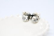 大粒のスクエア型プレシオサクリスタルを中心にパールをたっぷりのせたアンティーク調なデザインです。