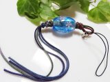 バーナーワークの技法で制作した、手作りのとんぼ玉のストラップです。