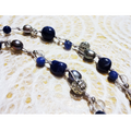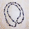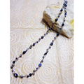 濃い紺色とシルバーの、どこか神秘的な雰囲気のロングネックレスです。