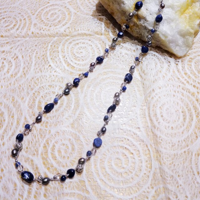 ソーダライトと淡水パールのロングネックレス Y-1236