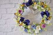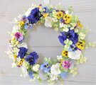 リース素材:アーティフィシャルフラワ-(造花):すみれ・パンジー・ブバルディア・あじさい・ユーカリなど。