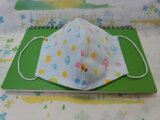 【手縫い】Wガーゼ立体マスク16×13㎝☆くま・うさぎ・ねこ・パンダ柄☆水色☆裏地手ぬぐい地☆プチギフト
