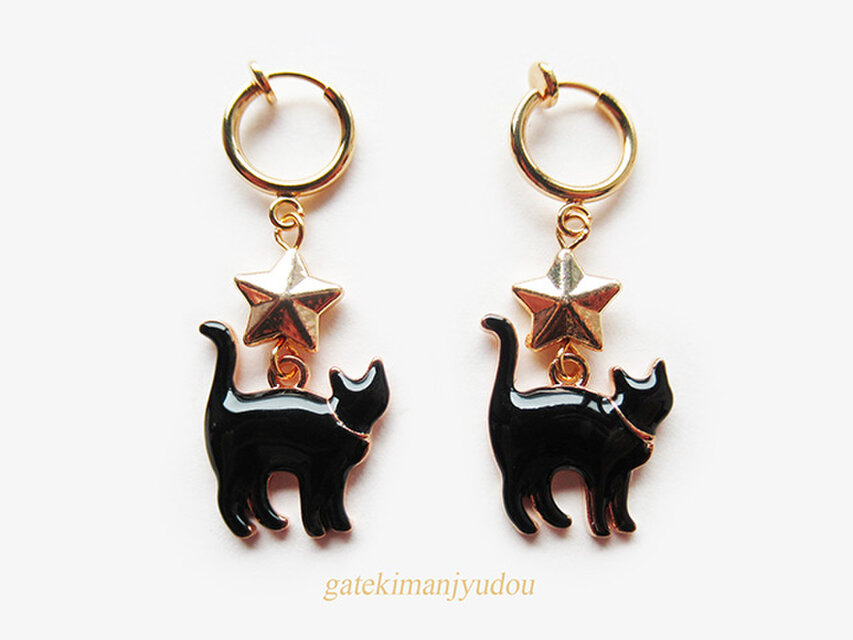 星と黒猫のフープイヤリング【ピアス等変更可】