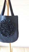 チェック&ストライプのカラーリネン(ネイビー)で作ったバックです。