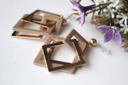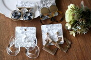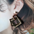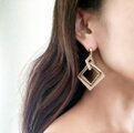 揺れる スクエアモチーフが特徴の、少し大ぶりなピアス。