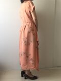 着物リメイク サーモンオレンジのスタンドカラードレス