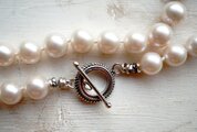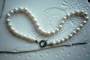 直径10mの美しいパールをシルク糸で結びながらつなげていったネックレスです。