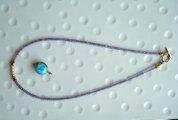 ネックレス部分は直径2mm、ボタンカット型の美しいラベンダー色のアメジストです。ラリマーの青と柔らかいラベンダカラーのアメジストがとても美しい組み合わせかと思います。