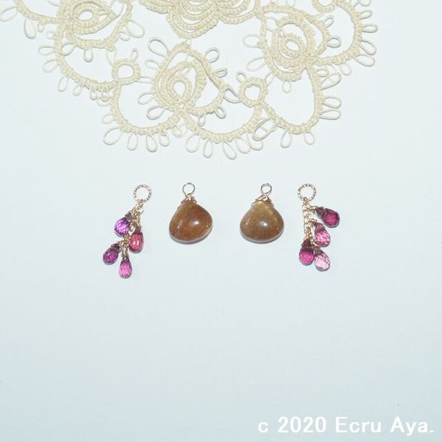 素材:宝石質シルバーシャイングレーブラウンムーンストーンAAA マロン プレーン、宝石質ロードライトガーネットAAA ドロップブリオレットカット、その他全て14kgf