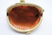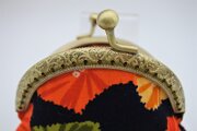 紺色地にカラフルな扇の柄が描かれている着物からがま口を作りました。