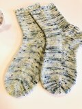 ちなみに竹串か?!ってくらい細い針で編んでるので意外と薄いです。普通の靴下と同じように履けますよ♪