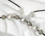大きな本真珠(淡水)と、南洋真珠のネックレスなどの高級宝飾品で使われます輝きが強いボール、2mmブラックスピネルのネックレスです。
