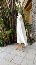 (M)真っ白でクラシカルな エレガント リネン ロング ワンピース