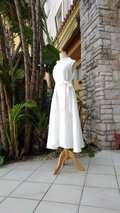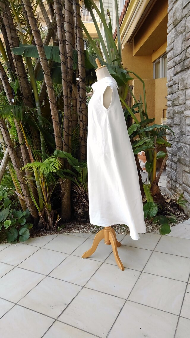気持ちがよい、すっきりした白のリネンワンピースです。