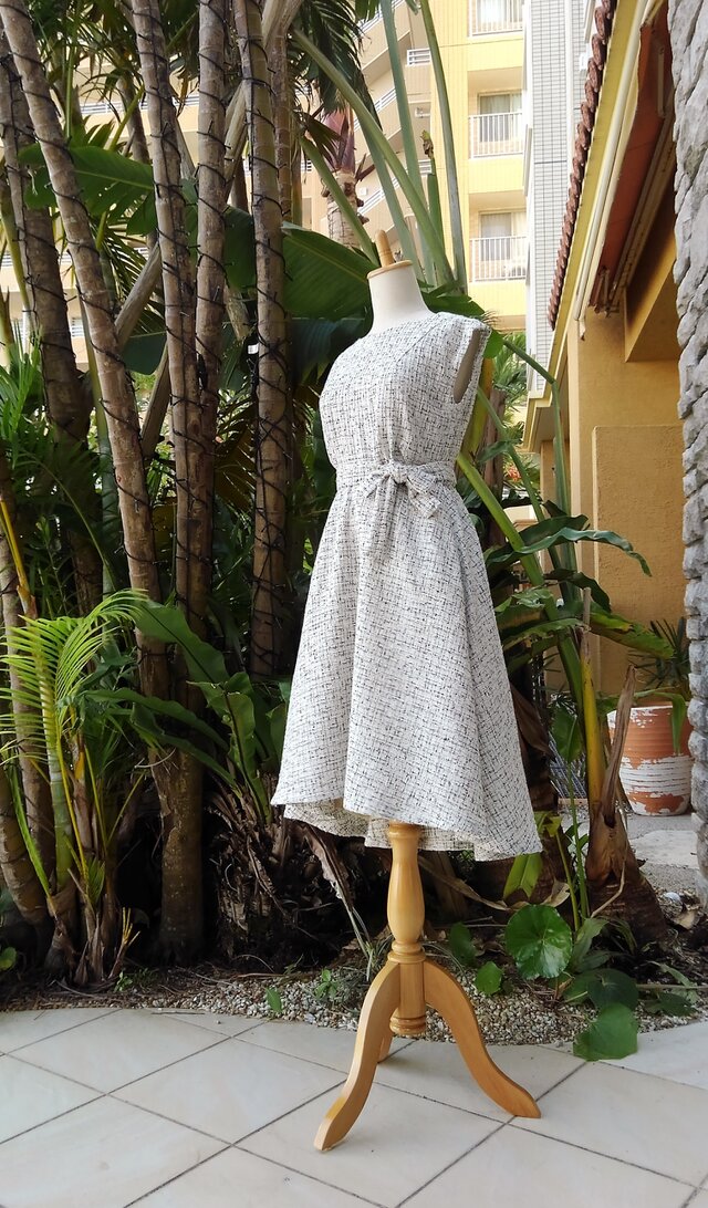 (M)白が多めのモノトーン セパレート ツイード ワンピース フィッシュテール