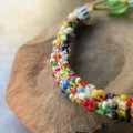 とてもカラフルで、ランダムなビーズの並びが特徴。