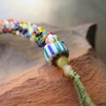 カラフルなこの連にあわせて、赤・緑・青のカラフルなシェブロンと黄色のヴェネチアンシードビーズを合わせました。