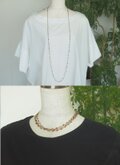 石と石は小さなリングを中心に結ばれております。ロープネックレスほどの長さがあり、3連までアレンジを楽しんでいただけます。背丈とのバランスも考えアジャスターをつけましたので、微妙な長さ調節も可能です。