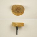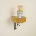 丸太裏におしゃれなダークブラウンのL字金具を付け、壁掛け棚、飾り台として仕上げました。