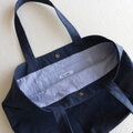 (外ポケット)ミッドナイトブルー 浜松産帆布使用横長トートL【受注製作】
