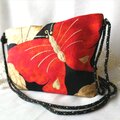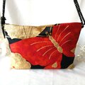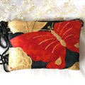 セール⭐︎国内からの発送☆きもの 帯 ヴィンテージ ちょっとお出かけショルダーバッグ ファスナー仕様☆ バタフライ朱赤×ゴールド