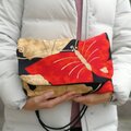 セール! 国内からの発送☆きもの 帯 ヴィンテージ ちょっとお出かけショルダーバッグ フラップ☆ バタフライ朱赤×ゴールド