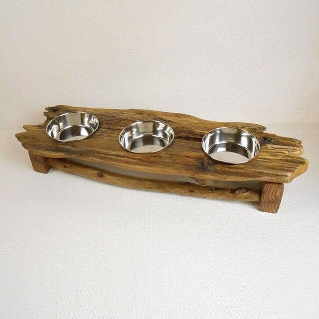 流木を使用したやさしさかわいさのあるエサ台、猫、小型犬用です。