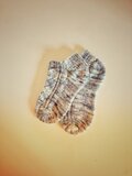 ちなみに竹串か?!ってくらい細い針で編んでるので意外と薄いです。普通の靴下と同じように履けますよ♪