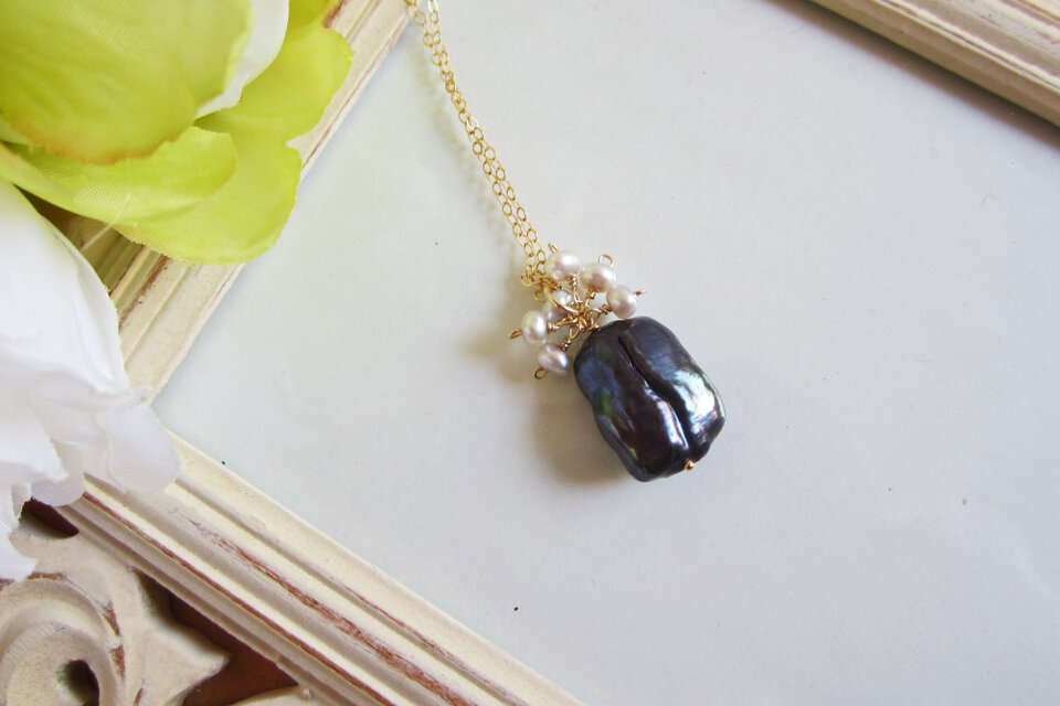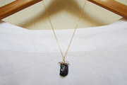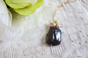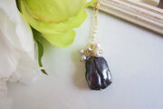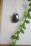 メタリックネイビーの淡水パールを使用したネックレスチャームです。
