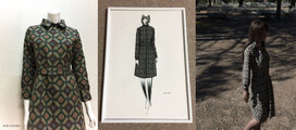 ゴブラン織りを使用したシャツ型の長袖ワンピースです。