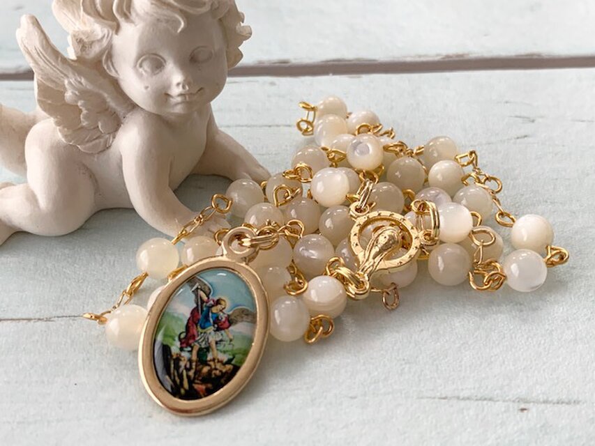 こちらのチャプレットはトップが聖ミカエルのメダイです。