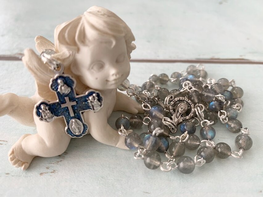 宝石質のとても美しい小さめブルーラブラドライトのロザリオです。