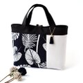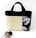 ・表と裏の黒字に白のトロピカル葉柄は、デザイナー・ryhmgeさんデザインを業者にプリントオーダーしたオリジナルデザイン(一般生地やさんでは販売しておりません)。日本製・10号キャンバス地。