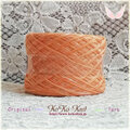 こちらはオレンジ系です。細い糸です。コットンとシルクの光沢で高級感のある糸です。段染めが入っておりますので、色の変化をお楽しみください。玉の表情は表に来る段染めの色でそれぞれ違います。