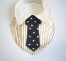 ボーダー生地にドット柄のネクタイをあしらったスタイです。