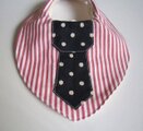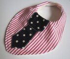 ボーダー生地にドット柄のネクタイをあしらったスタイです。